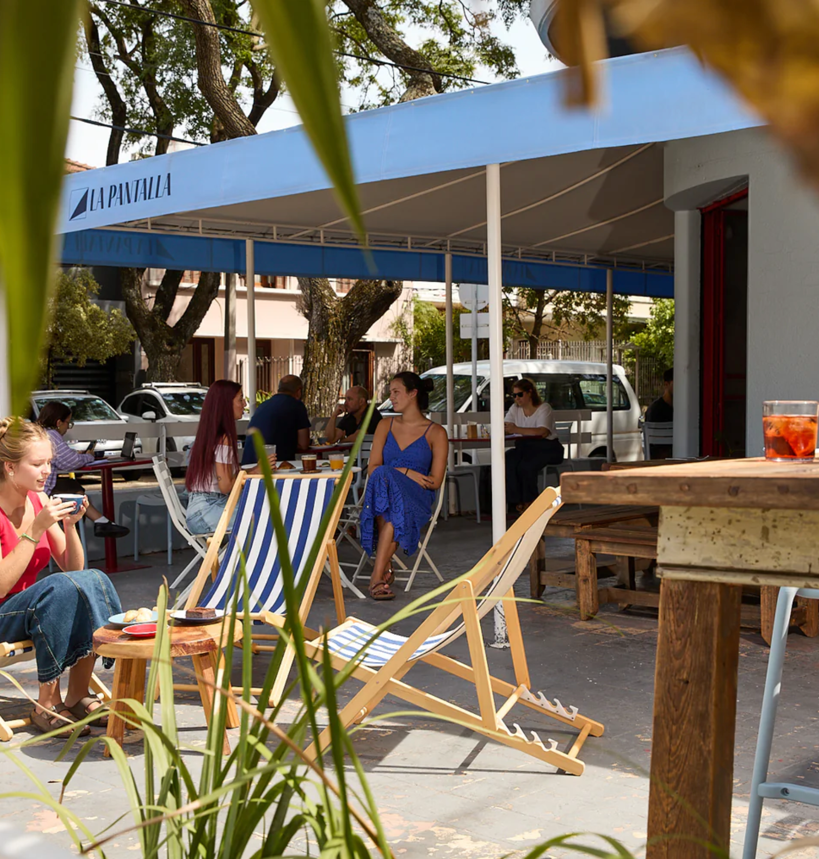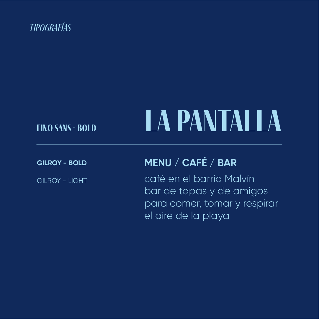 Identidad visual para el café y restaurant La Pantalla. En 1927 se inauguró el cine ‘’La Pantalla’’ ubicado en la Playa Brava de Malvín. Un punto cultural, un lugar de encuentro para los locales y aledaños. Casi 100 años después, con el mismo objetivo y en forma de homenaje, se inaugura ‘’La Pantalla’’ en Malvin, un nuevo punto de encuentro, un nuevo espacio gastronómico y cultural para todos. Desde el branding la idea fue hacerle un guiño a esta historia.